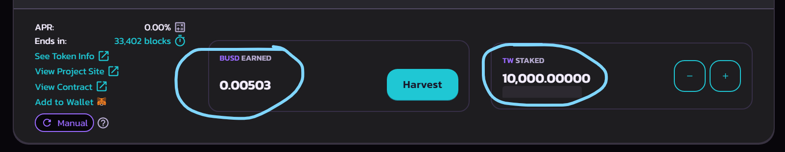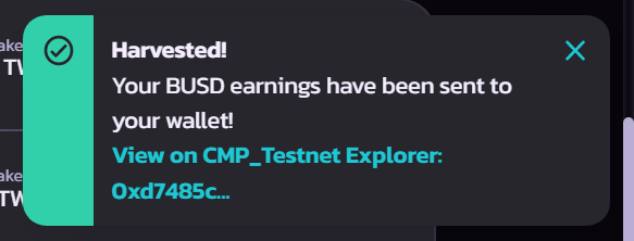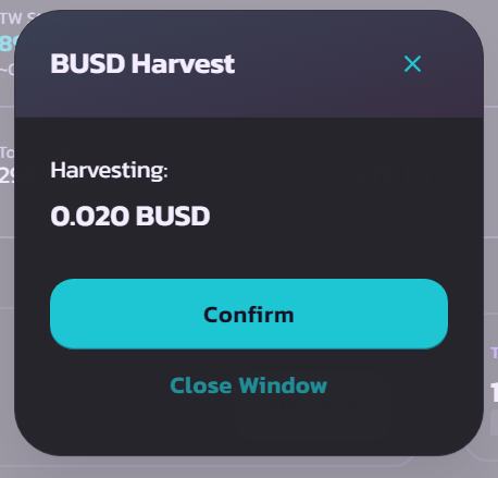 Click "Harvest" to harvest your reward.